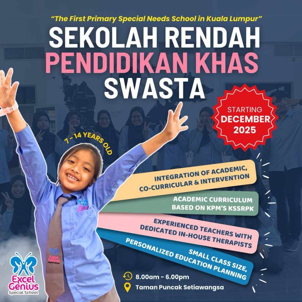 Excel Genius Special School (EGSS) is a primary school for children with special needs and one of subsidiaries under the brand of Excel Qhalif (EQ). EQ mainly caters for pre-school children aged 2-6 years old in providing playgroup therapy, one to one therapy and intervention in Klang Valley. EQ has more than 10 years experience and dedicated commitments in education industry, EGSS was born to make an education become more accessible to everyone and to foster continuous learning for children with special needs from minimum age of 6 until maximum age of 14 years old.